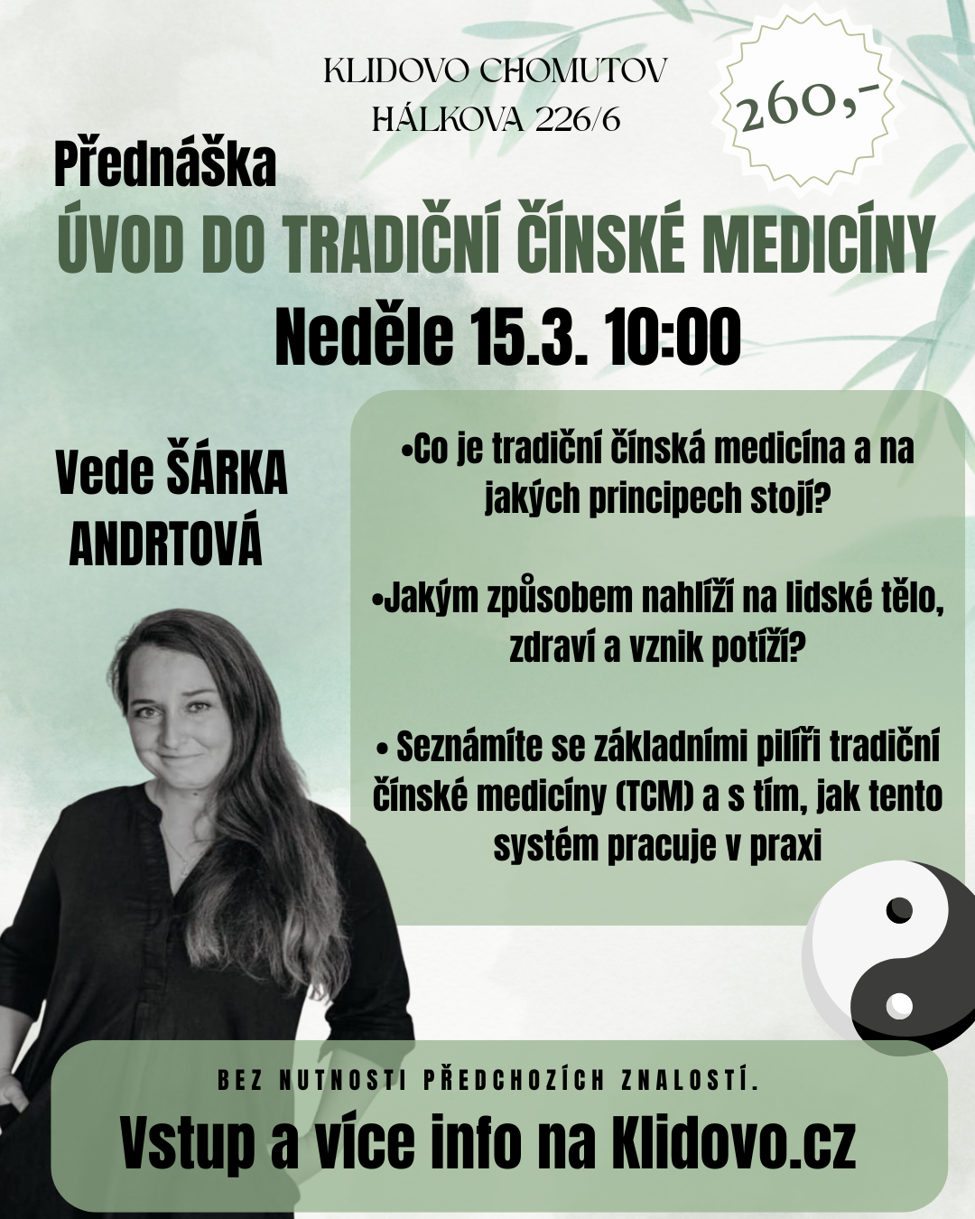 Přednáška ÚVOD DO TRADIČNÍ ČÍNSKÉ MEDICÍNY Ne 15.3. 10:00